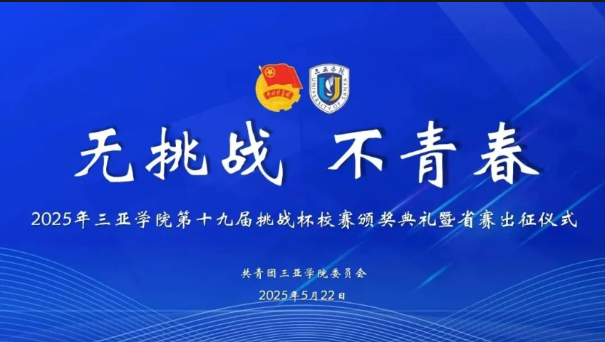 2025年5月22日,三亚学院成功举办了“无挑战 不青春”挑战杯校赛颁奖典礼暨省赛出征仪式。此次活动不仅是创新者与追梦人的青春盛会,也是展现三亚学院学子科研创新实力的荣耀时刻。全校14个学院、225支团队、2000余名师生积极参与,经过多轮激烈角逐,最终26个项目脱颖而出,晋级省赛。