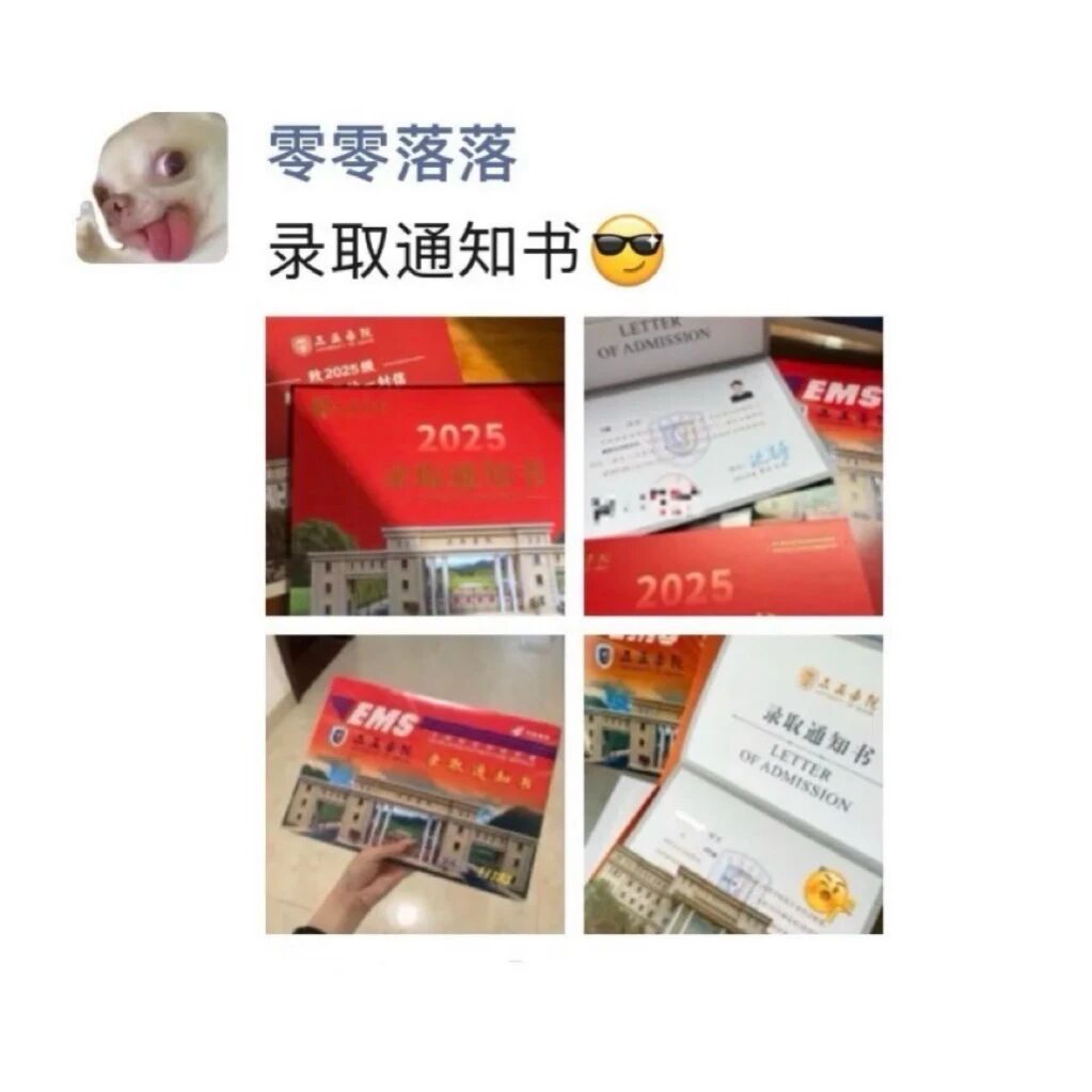 拆开快递袋的瞬间,阳光恰好落在烫金的校徽上,晃得人眼睛发酸。那些在台灯下写空的笔芯、凌晨五点的闹钟、模考后偷偷抹掉的眼泪,此刻都变成了通知书上清晰的落款。原来真的有一天,努力会变成具象的模样,带着油墨香和新征程的重量。未来的日子,继续带着这份滚烫的期待,好好生长!