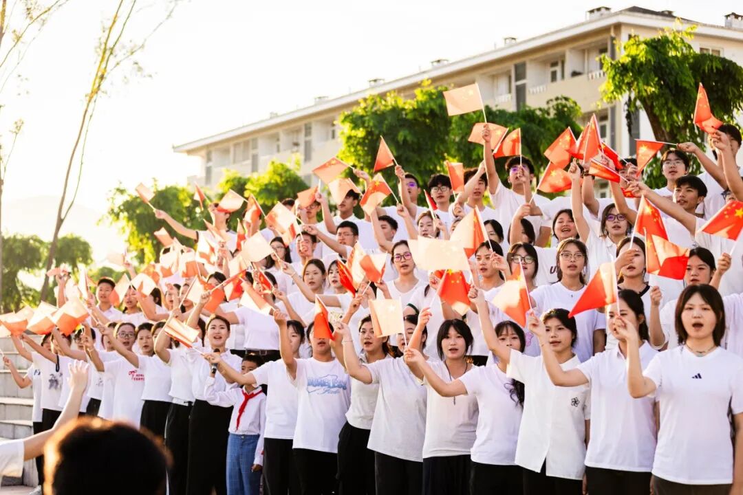 国歌奏响,庄严神圣!全体师生肃立行注目礼,炽热的目光追随着冉冉升起的国旗。当五星红旗升至杆顶,迎风招展于晨曦之中,那份对祖国七十六载辉煌成就的自豪感与建设未来的责任感,在每个人心中升腾激荡。
