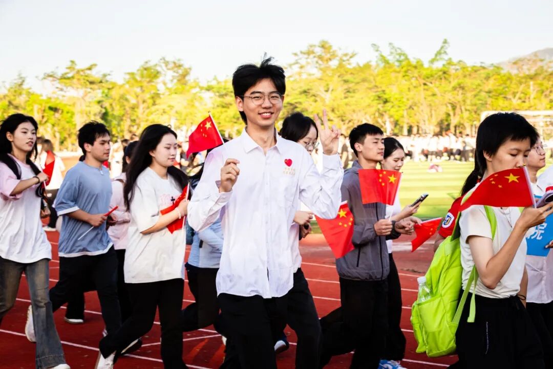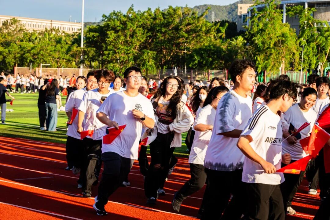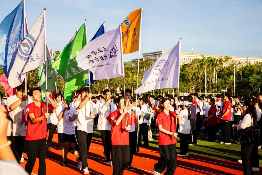 怀抱梦想,脚踏实地;敢想敢为,善作善成。在《歌唱祖国》或激昂奋进的乐曲声中,健康跑环节活力开启!各学院师生代表手持鲜艳的旗帜,精神抖擞,步伐坚定地奔跑在田径场跑道上。旗帜迎风招展,步伐充满力量,象征着青春的朝气与奋斗的激情。他们以奔跑的姿态,展现了三亚学院学子强健体魄、昂扬向上的精神风貌,更表达了接续奋斗、矢志报国的坚定决心。