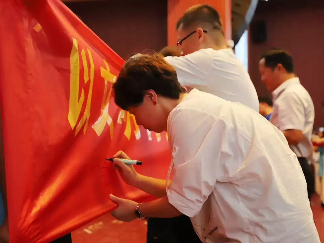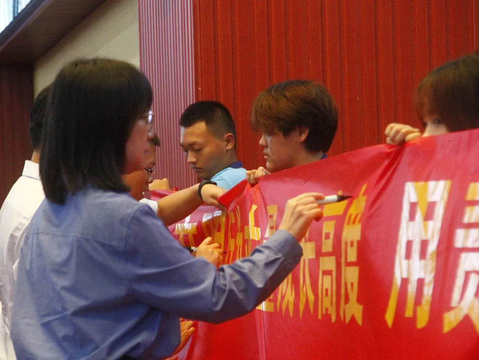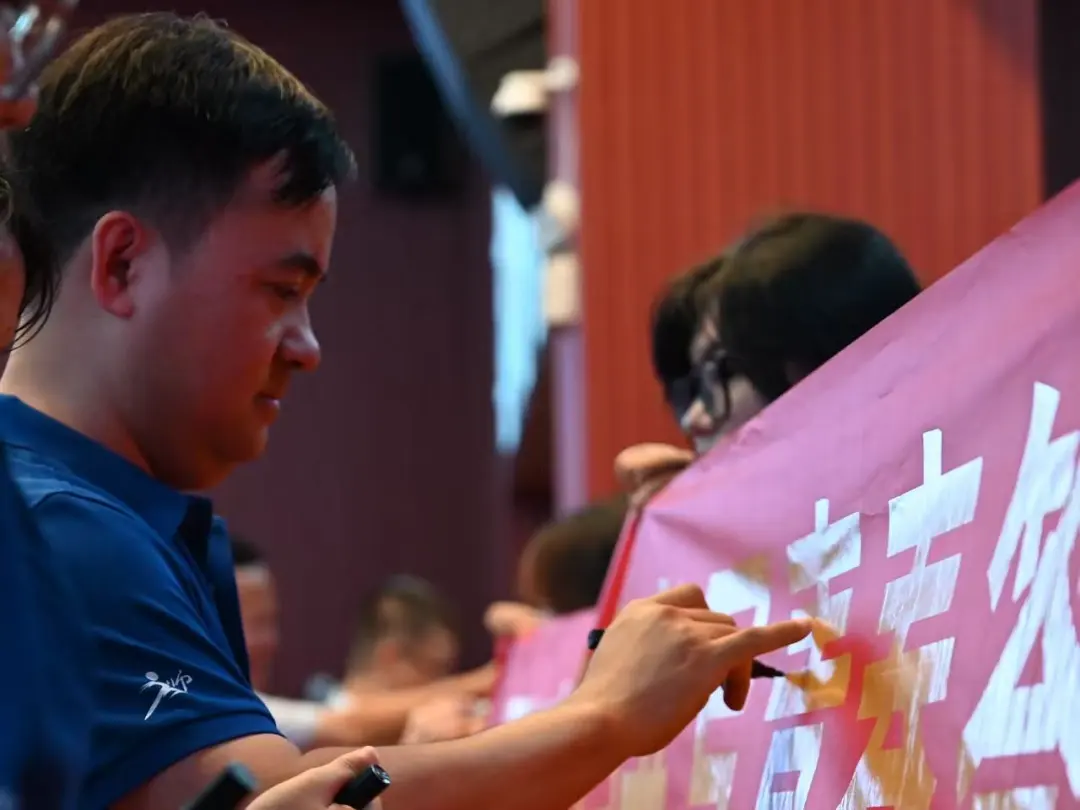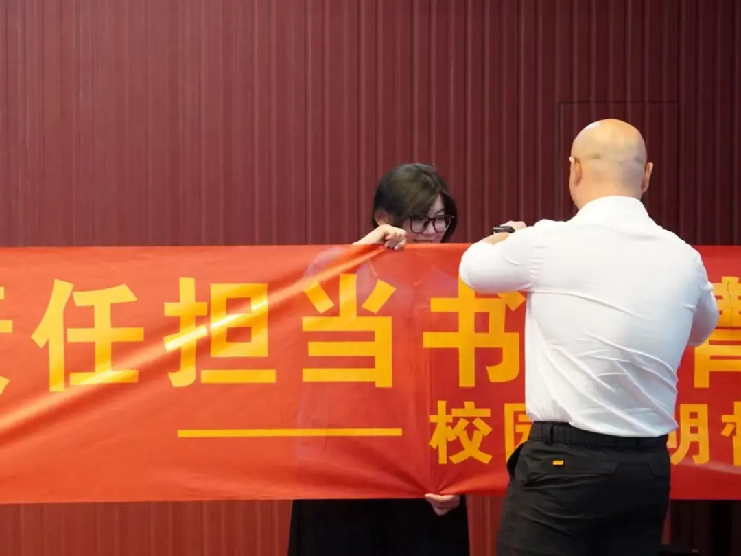 参会师生在条幅上执笔落墨,写下对校园的美好心愿。笔墨传情间,既镌刻下文明创建的清晰足迹,也凝聚起校园发展的智慧与热忱,更让师生同心同行、共赴理想的珍贵瞬间永久留存,成为校园文明路上温暖的记忆注脚。
