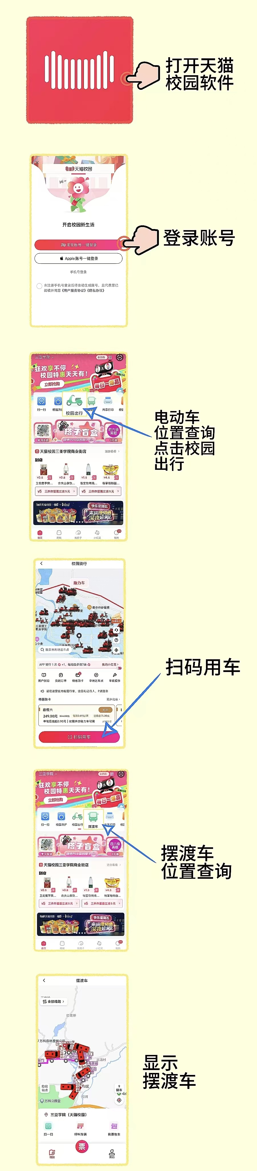 别担心复杂,核心就三点:“戴头盔、按位停、不超载”。具体怎么借还车?认准学校官方推荐的天猫校园APP,内有最详细的校园内禁停区、还车点地图,跟着操作,零失误入门