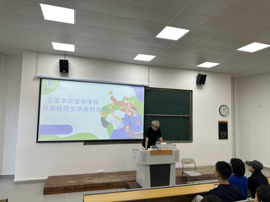 音乐学院举办校园文明系列讲座与文明情景剧活动,旨在通过深入讲解与生动演绎提升同学们的文明素养。在讲座中,学子们了解了社会礼仪与道德规范,情景剧则通过角色扮演让同学们更直观地体验文明行为的实际应用。这些活动不仅加深了同学们对文明的理解,也为校园文化增添了更多活力与创意。