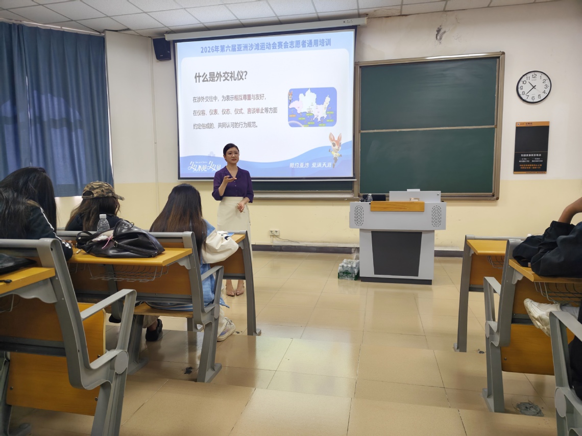 在一天半的集中培训中,来自亚沙会组委会的培训讲师及专业教师,通过讲座、互动交流、情景模拟等多种形式,为志愿者们进行了系统指导。