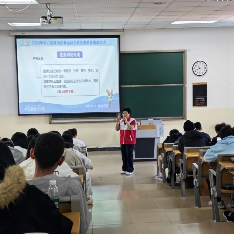 本次培训共约1600余名三亚学院志愿者积极参与,旨在通过系统化、专业化的课程设置,全面提升其服务意识、礼仪素养与应急能力,助力志愿者们以最佳状态投身亚沙、展现青春风采,也为赛事的顺利举办注入坚实的高校力量