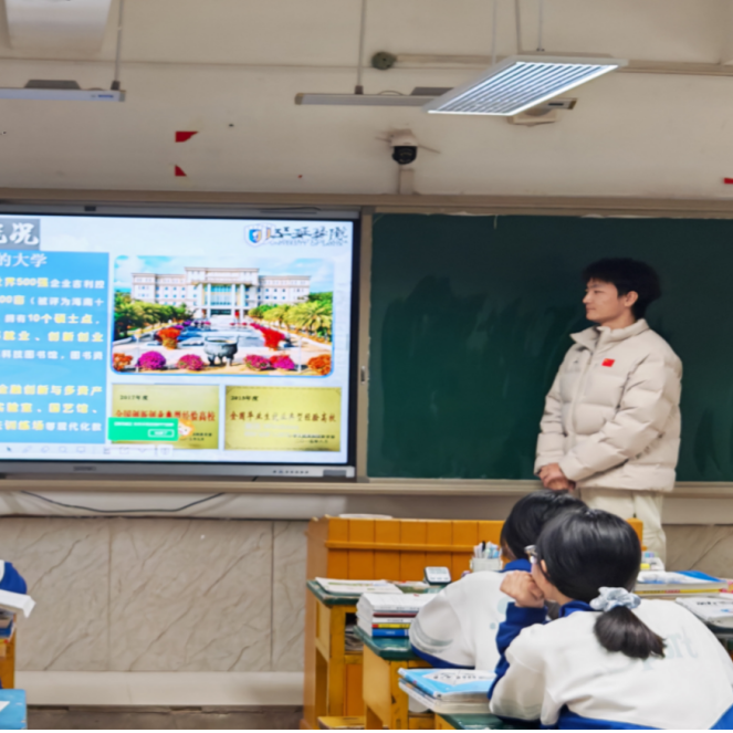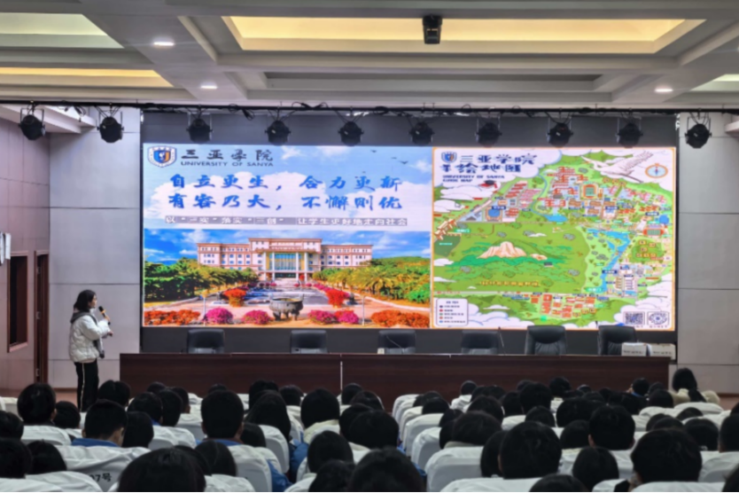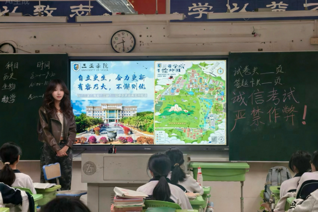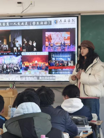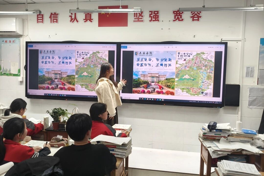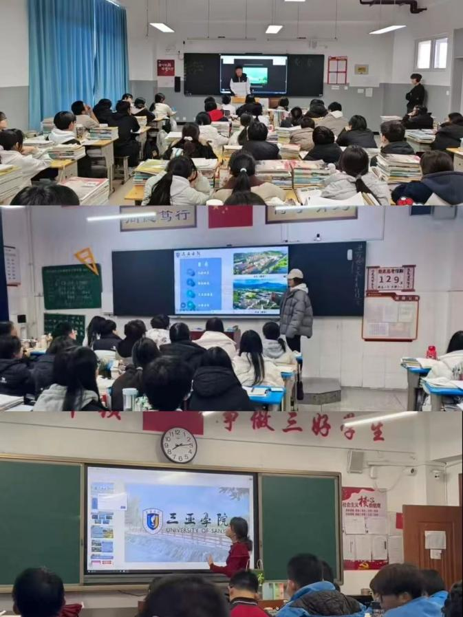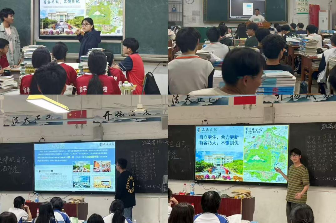 外国语学院学子开展“把我的大学带回家”活动,蔡梦冉回到江苏徐州沛县树恩中学,分享大学生活与备考经验;庞金程从内蒙古返家乡,用图文影像展现三亚学院风采,为学弟学妹答疑解惑,搭建高校与生源中学的沟通桥梁,传递远方的梦想与勇气。