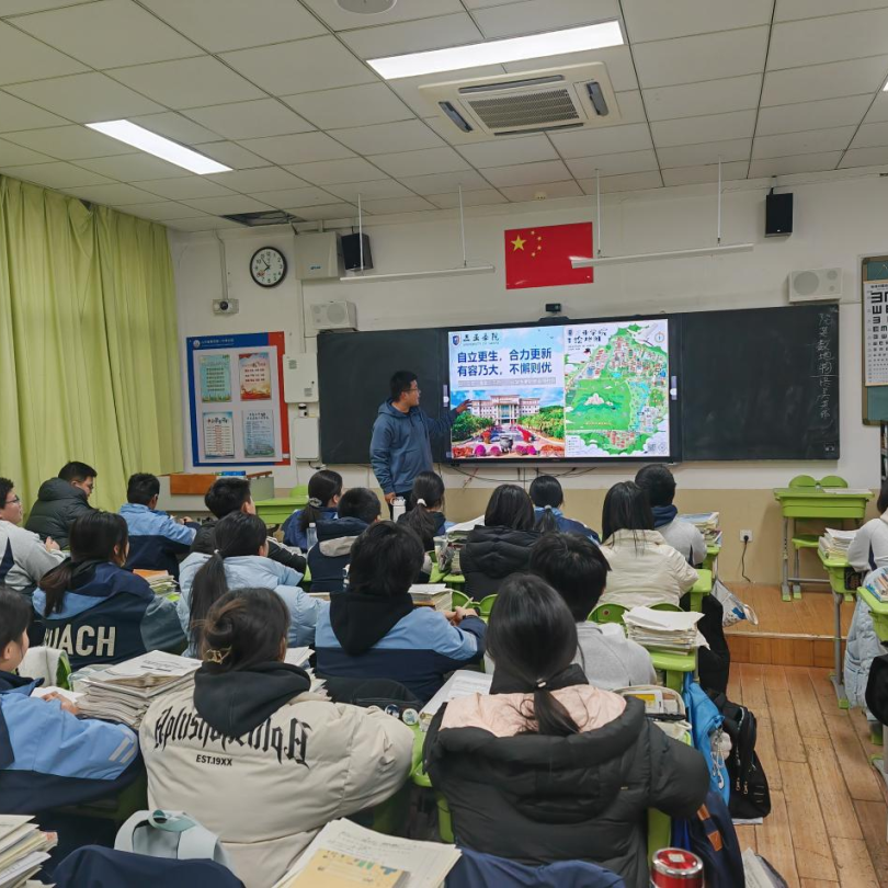 新能源与智能网联汽车学院16名学子奔赴5省12所高中开展“把我的大学带回家”活动,结合专业特色介绍新能源汽车、智能网联等前沿领域,展示学院优质教学资源与产教融合平台,为800余名高三学子答疑解惑,搭建高中与大学的沟通桥梁。