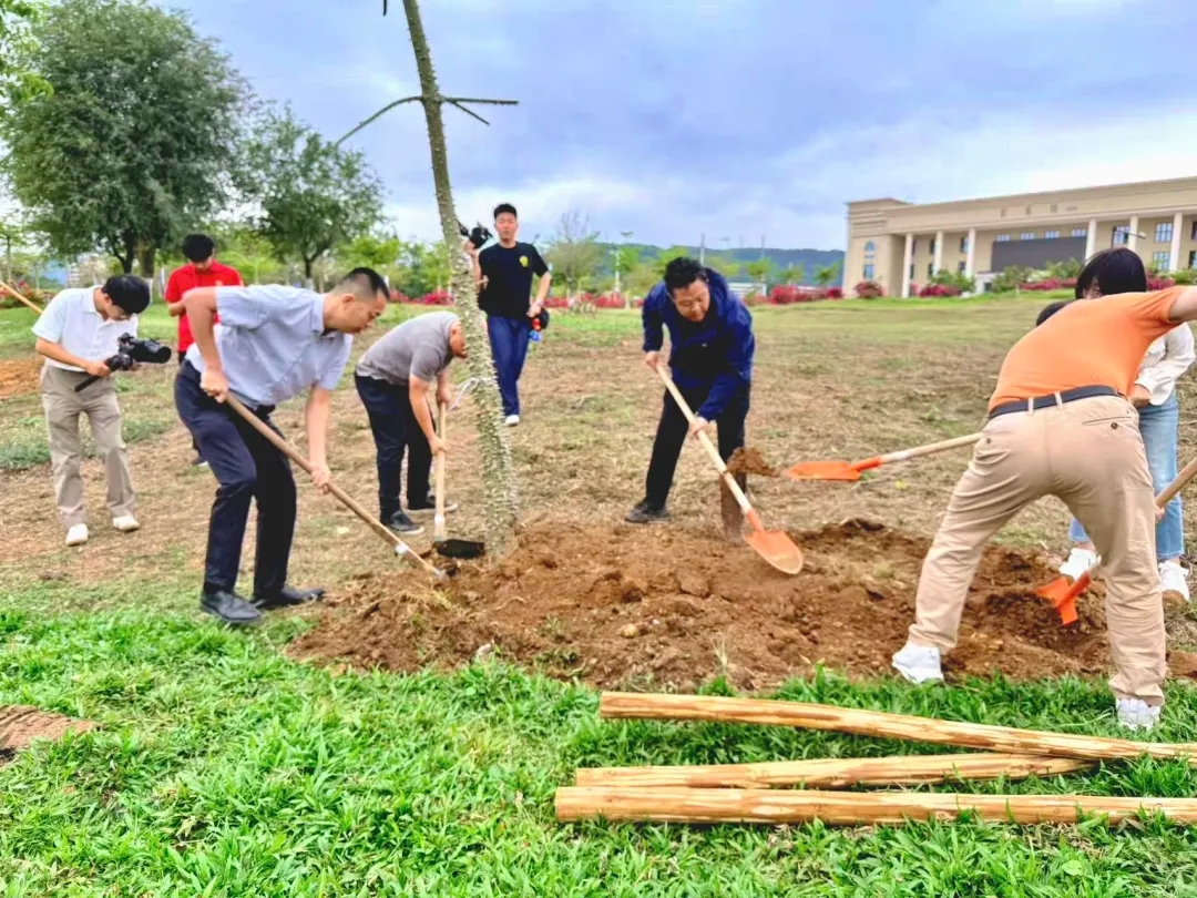 “这恰如植树,既要向下扎根,夯实全员招生、就业的生存之基;也要向上生长,以全员项目、AI驱动创新,追寻蓝天。今天,我们亲手种下的不仅是树苗,更是一份‘向下扎根、向上生长’的信念。愿这份劳动的汗水,能浇灌出我们与校园共同的、郁郁葱葱的未来。”