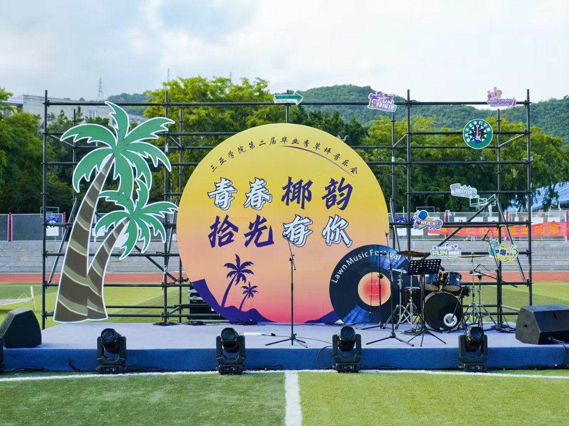2.可融入音乐元素、毕业标语、校园元素、青春意象等,可形式多样(如异形),色彩协调统一,兼顾灯光下的视觉效果,确保舞台成为整场音乐节的核心视觉亮点。