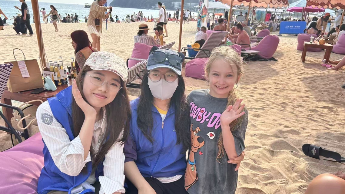 旅游与大健康学院在大东海沙滩开展“多语传温情,安全伴同行”志愿活动,融合多语专业优势与AI技术,面向中外游客普及防溺水安全知识。