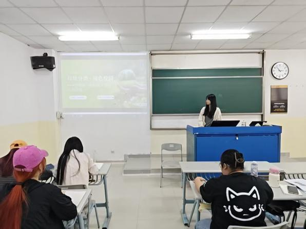 各班同步开展垃圾分类宣讲与校园环境整治实践,以宣讲普及、情景互动、实地行动践行志愿精神。