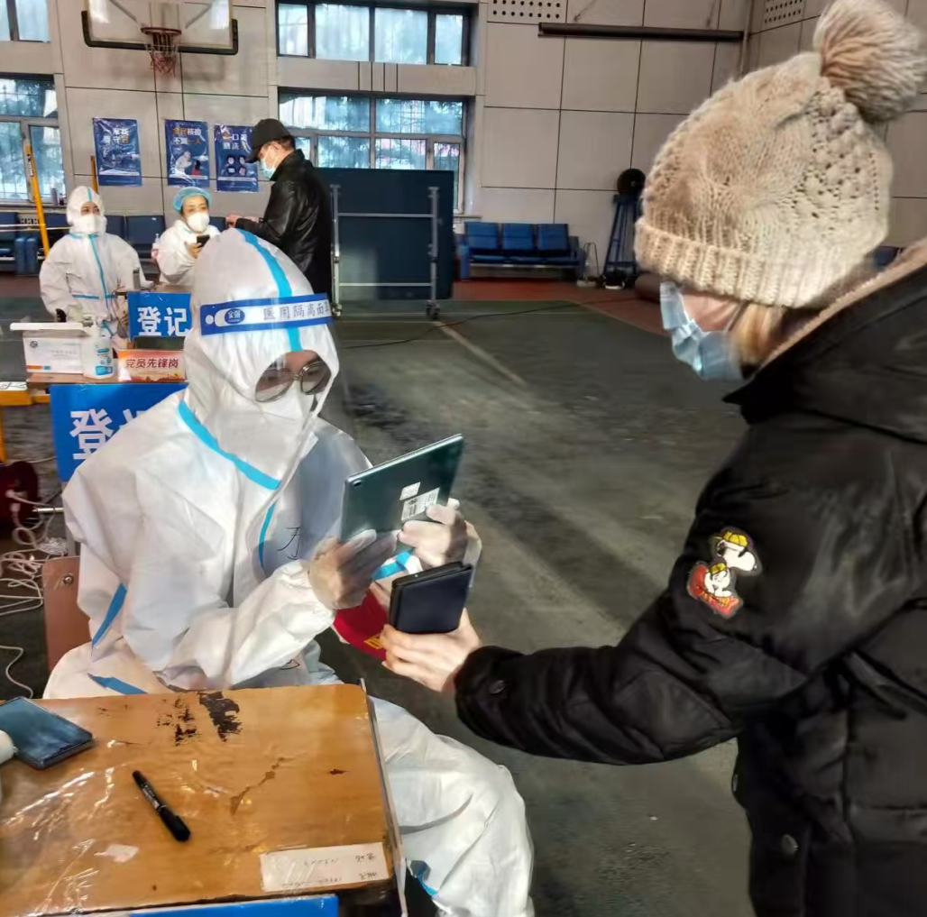 2022年8月,面对哈尔滨的疫情考验,志愿者李禹廷同学主动加入社区防疫志愿队。
