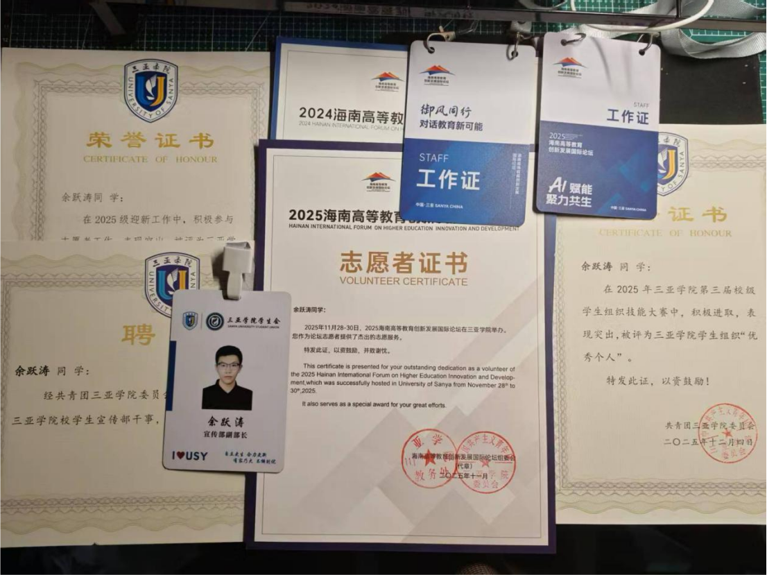 2025年12 月,志愿者余跃涛同学以志愿者身份投身高等教育论坛服务。