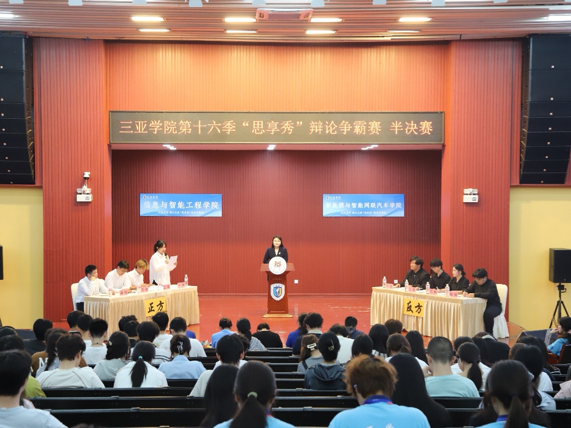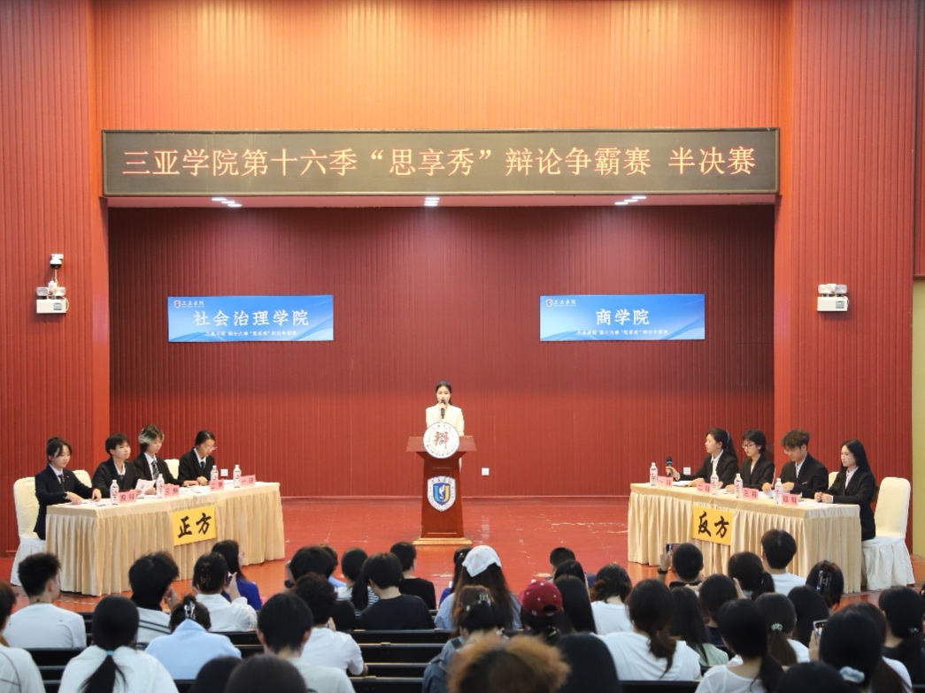 2026年4月22日,三亚学院第十六季“思享秀”辩论争霸赛半决赛在书会堂圆满收官。本场赛事紧扣“全员项目制、全员就业制”时代课题,立足高校育人机制与社会用人标准高效衔接的现实背景,四支劲旅轮番登场,以言为剑,以理为盾,在两场强强对话中,探寻项目制驱动青年蜕变、高质就业的当代方案。