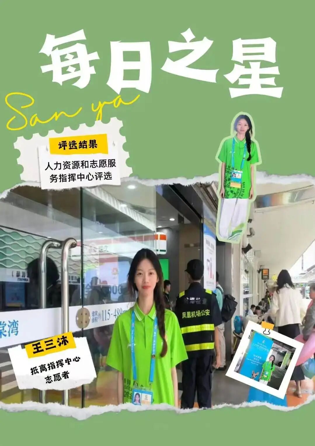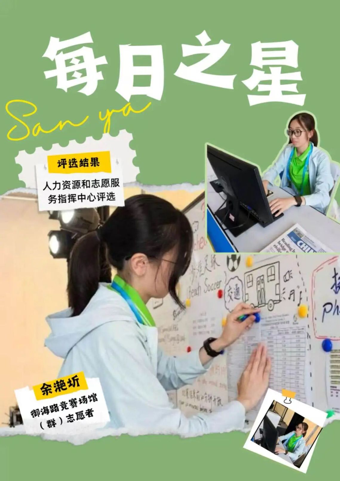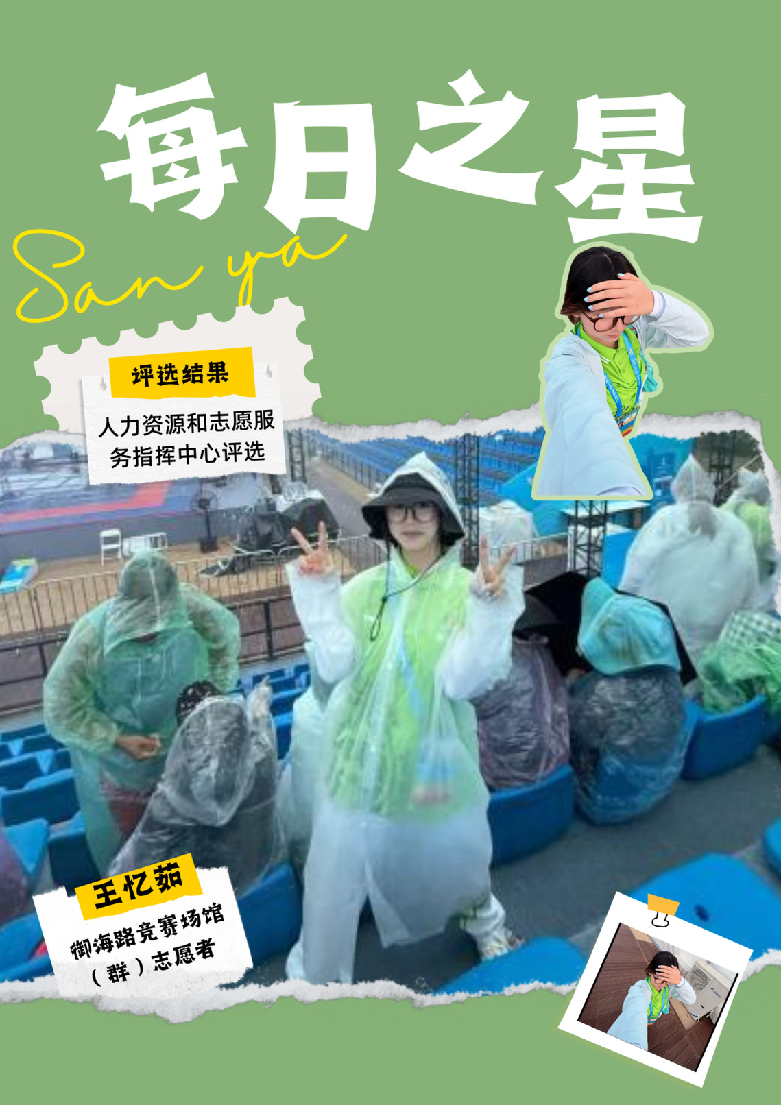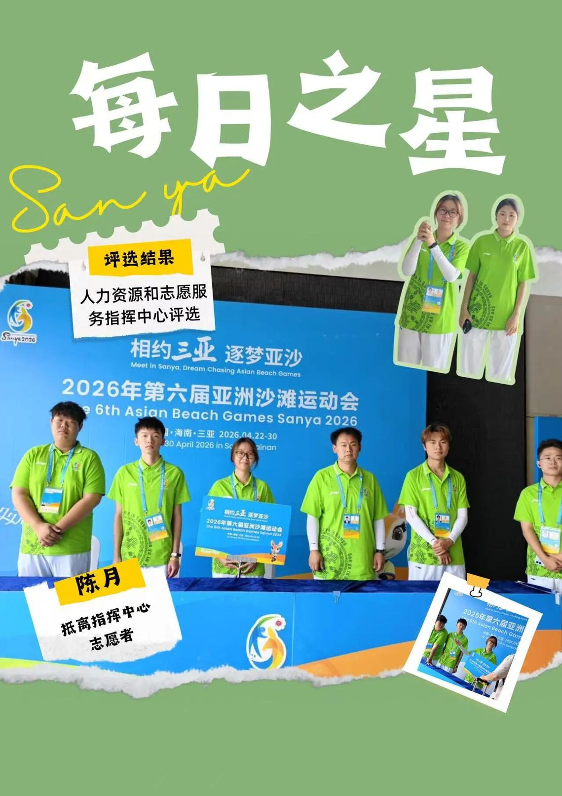 这份“每日之星”的荣誉是鼓励更是鞭策。未来我将继续以饱满热情投入抵离服务,精益求精,用真诚与专业传递亚沙温度,展现中国青年志愿者的风采,为亚沙会圆满举办贡献青春力量。