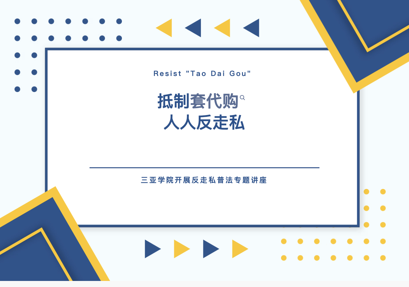 抵制套代购人人反走私三亚学院开展反走私普法专题讲座为进一步增强青年学生法治观念,筑牢反走私思想防线,...